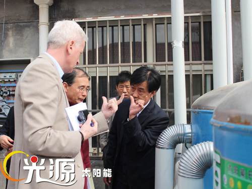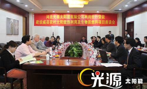 識別團一行在河北省發(fā)改委外資處副處長史海峰、河北省財政廳涉外處副處長何貴滿、河北省新能源技術推廣站副主任王香雪及市直有關部門負責人的陪同下實地考察了光源公司威縣農村太陽能熱利用及生物質燃料項目。通過考察了解了太陽能采暖、太陽能熱開水系統(tǒng)的工作原理、項目周邊環(huán)境及使用情況,并對項目的具體情況展開了座談討論。光源公司副總經理邵東坤就光源公司的基本概況、經營情況以及世行貸款項目概況向識別團進行了匯報,識別團針對項目的建設內容、開發(fā)潛力、市場風險等問題進行了提問和討論。