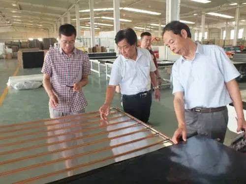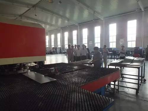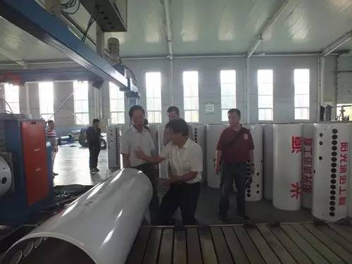 在參觀完太陽能真空集熱管制造車間后又到了太陽能工程設(shè)備總裝車間,先后參觀了全自動(dòng)下料開平設(shè)備、轉(zhuǎn)塔式全自動(dòng)數(shù)控沖床生產(chǎn)線、全自動(dòng)外皮雙頭縮口滾花機(jī)、臥式反向積放發(fā)泡生產(chǎn)線、環(huán)戊烷聚氨酯高壓發(fā)泡機(jī)、全自動(dòng)數(shù)控打包生產(chǎn)線以及壁掛太陽能生產(chǎn)線等等。