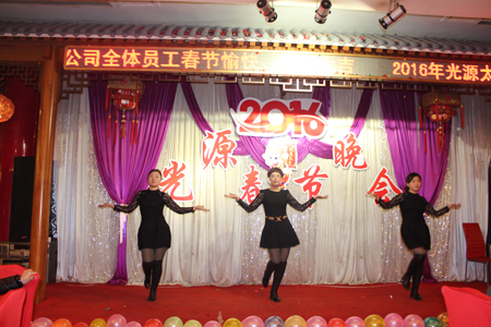 在2016年猴年春節(jié)到來前夕,光源公司于農(nóng)歷臘月二十二(公元2016年1月31日)在邢臺市天橋莊園多功能廳舉行2016年春節(jié)聯(lián)歡晚會,大家歡聚一堂,載歌載舞,共迎新春。