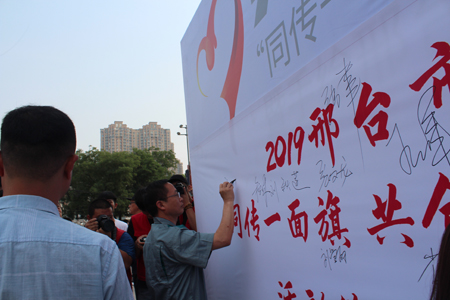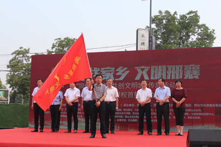 2019年6月17日上午,我公司與邢臺(tái)市各行業(yè)的30家代表單位共同參加了,由市宣傳部、文明辦舉辦的“同傳一面旗 共創(chuàng)文明城”傳旗活動(dòng)暨手繪邢臺(tái)授權(quán)首展啟動(dòng)儀式。