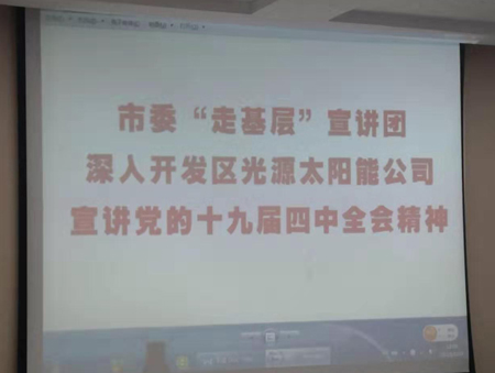 12月3日市委“走基層”宣講團一行6人到開發(fā)區(qū)光源太陽能科技有限公司,宣講黨的十九屆四中全會精神。