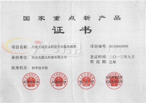 國(guó)家重點(diǎn)新產(chǎn)品證書(shū)
