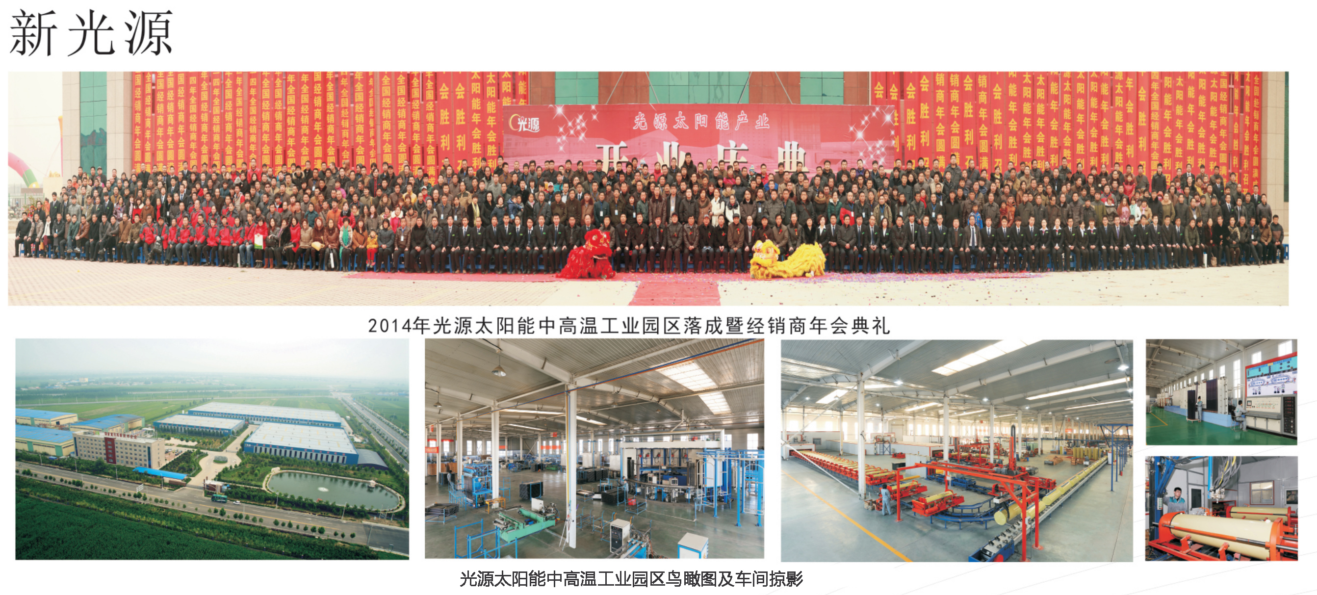 2013年12月光源公司搬遷到新廠區(qū),如今的光源公司,以黨的路線方針和政策為指導(dǎo),以科技發(fā)展與創(chuàng)新為契機(jī),以太陽(yáng)能開(kāi)發(fā)與利用為訴求,不僅夯實(shí)了太陽(yáng)能熱水系統(tǒng)等傳統(tǒng)產(chǎn)品的基石,更在新能源產(chǎn)品的開(kāi)發(fā)中屢戰(zhàn)佳績(jī)。