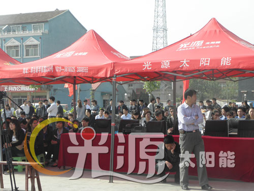 廣場的一側,光源銀月亮、浴美人系列太陽能列隊排開,漂亮的機型,明碼標價的質優(yōu)價廉產品,吸引了廣大老百姓駐足凝神觀看!實實在在的優(yōu)惠政策,在加上工作人員耐心細致的講解,廣大老百姓紛紛踴躍定機!