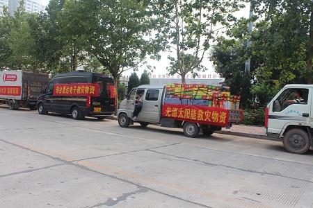 7月25日上午,一輛載滿救災(zāi)物資的貨車(chē)駛?cè)胄吓_(tái)經(jīng)濟(jì)開(kāi)發(fā)區(qū)王快鎮(zhèn)政府,車(chē)上裝有100箱方便面和100箱礦泉水,車(chē)廂兩側(cè)懸掛著‘光源太陽(yáng)能公司救災(zāi)物資’的條幅。這已是光源太陽(yáng)能公司繼7月23日向邢臺(tái)災(zāi)區(qū)捐助價(jià)值25000元款物之后,第二次向邢臺(tái)災(zāi)區(qū)捐助救災(zāi)物資,此次捐助的救災(zāi)物資合計(jì)價(jià)值10000元。