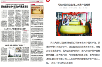 日北京日?qǐng)?bào)刊登了河北光源科技有限公司助力京津冀清潔取暖的消息。